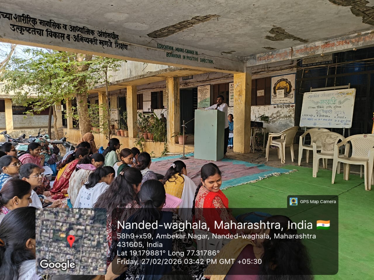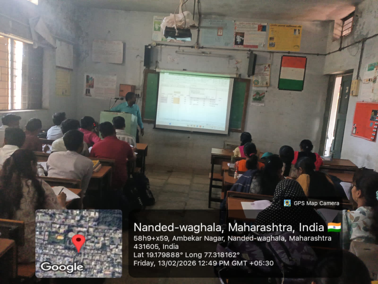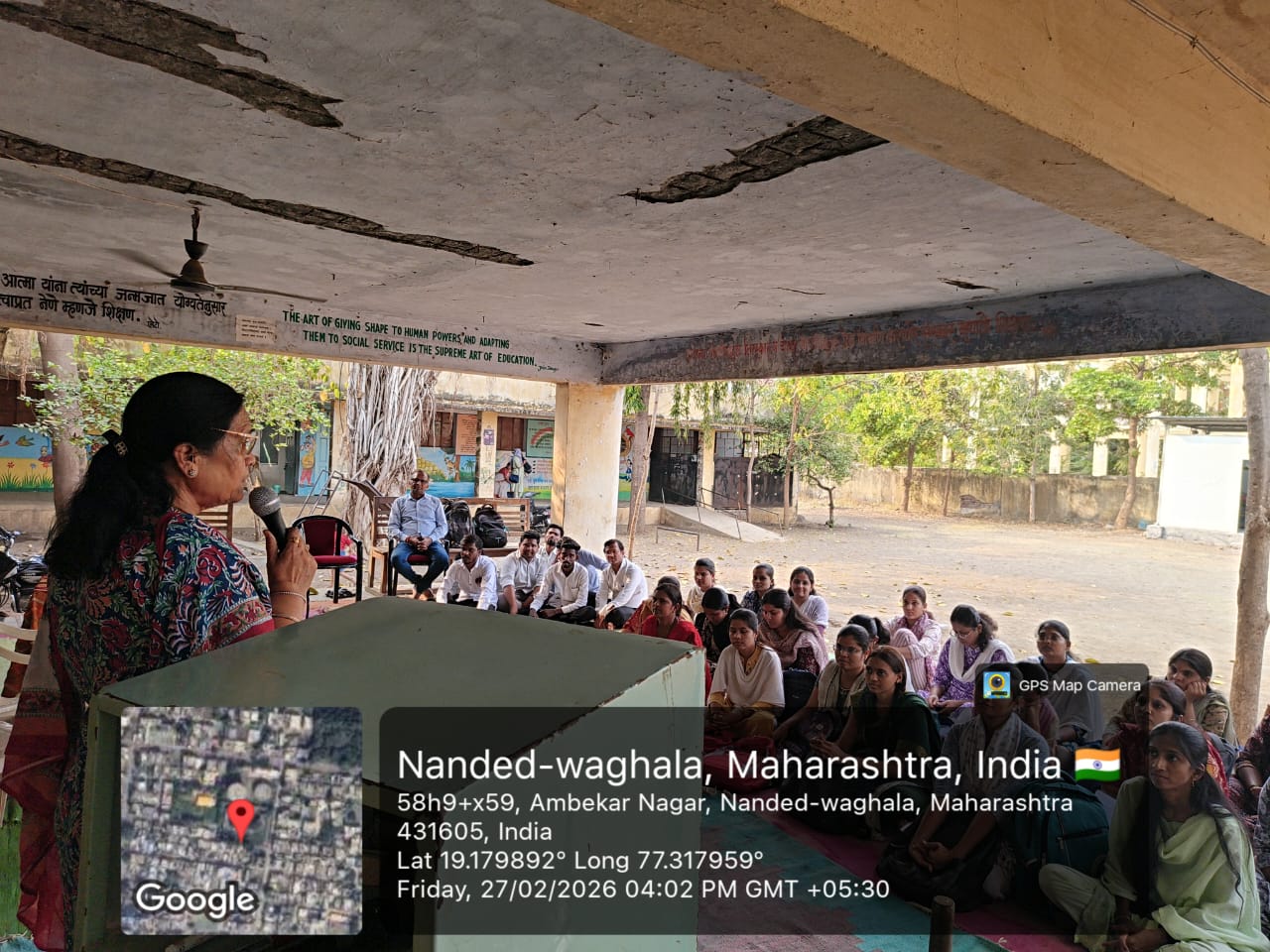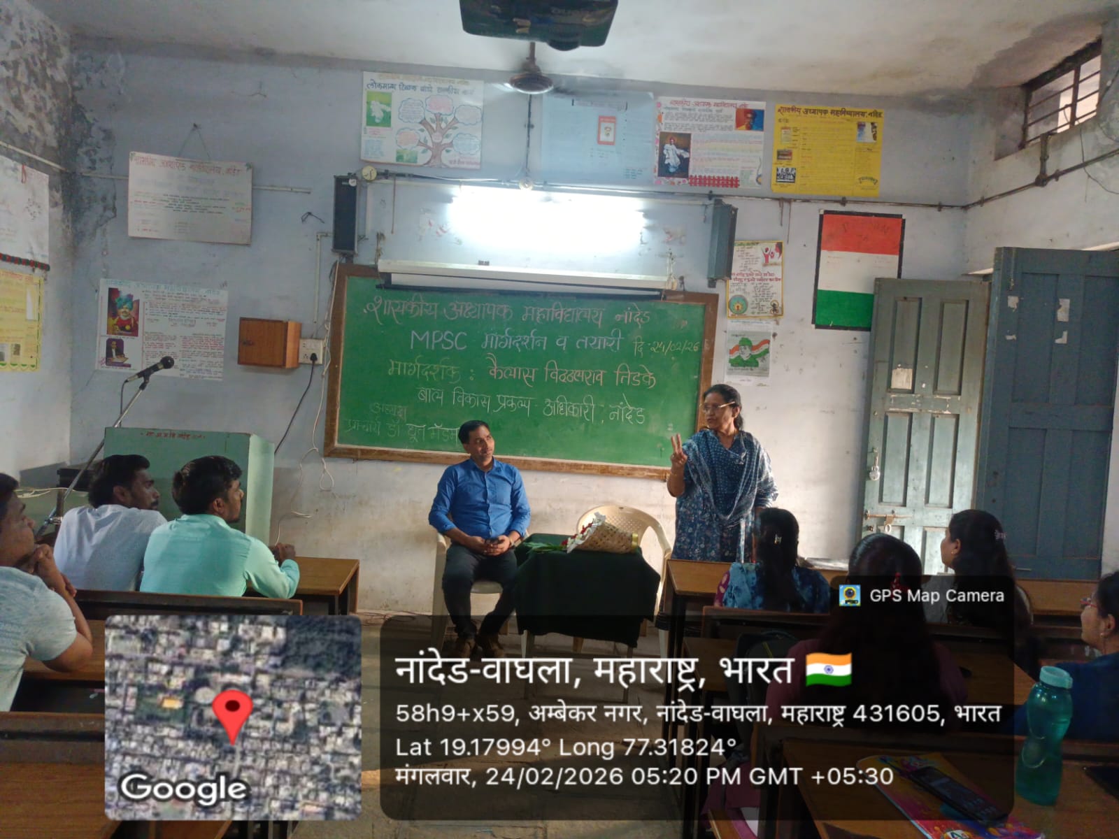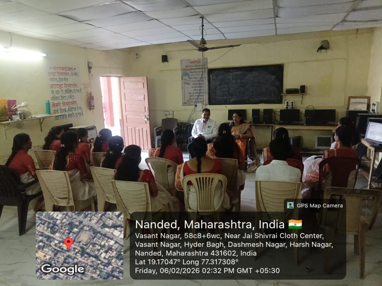 आज दिनांक 24 फेब्रुवारी 2026 रोजी महाविद्यालयात. एम पी एस सी. परीक्षा व तयारी या विषयावर एका दिवसाची कार्यशाळा घेण्यात आली.श्री कैलास विठ्ठल तिडके,जिल्हा बाळ विकास प्रकल्प अधिकारी,नांदेड यांनी द्वितीय वर्षाच्या प्रशिक्षणार्थ्यांना एम पी एस सी(MPSC) परीक्षा व तयारी या बाबत चे मार्गदर्शन केले .या वेळी महाविद्यालयाच्या प्राचार्य डॉ उर्मिला धूत यांनी प्रशिक्षणार्थ्यांनी स्पर्धा परीक्षांचा अभ्यास करावा या बाबत उदबोधन केले ( one day work shop for 2nd year teacher trainee has organised on MPSC exams & preparation . Dist Bal Vikas project offer Nanded Shree Kailash Vitthalrao Tudke has guided to teachertrainee .College principal Dr Urmila Dhoot oriented to teacher trainee about awareness of MPSC exam on dated 24 February 2026)