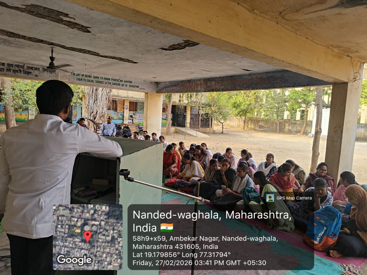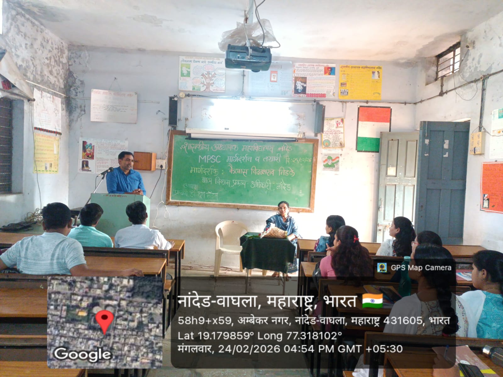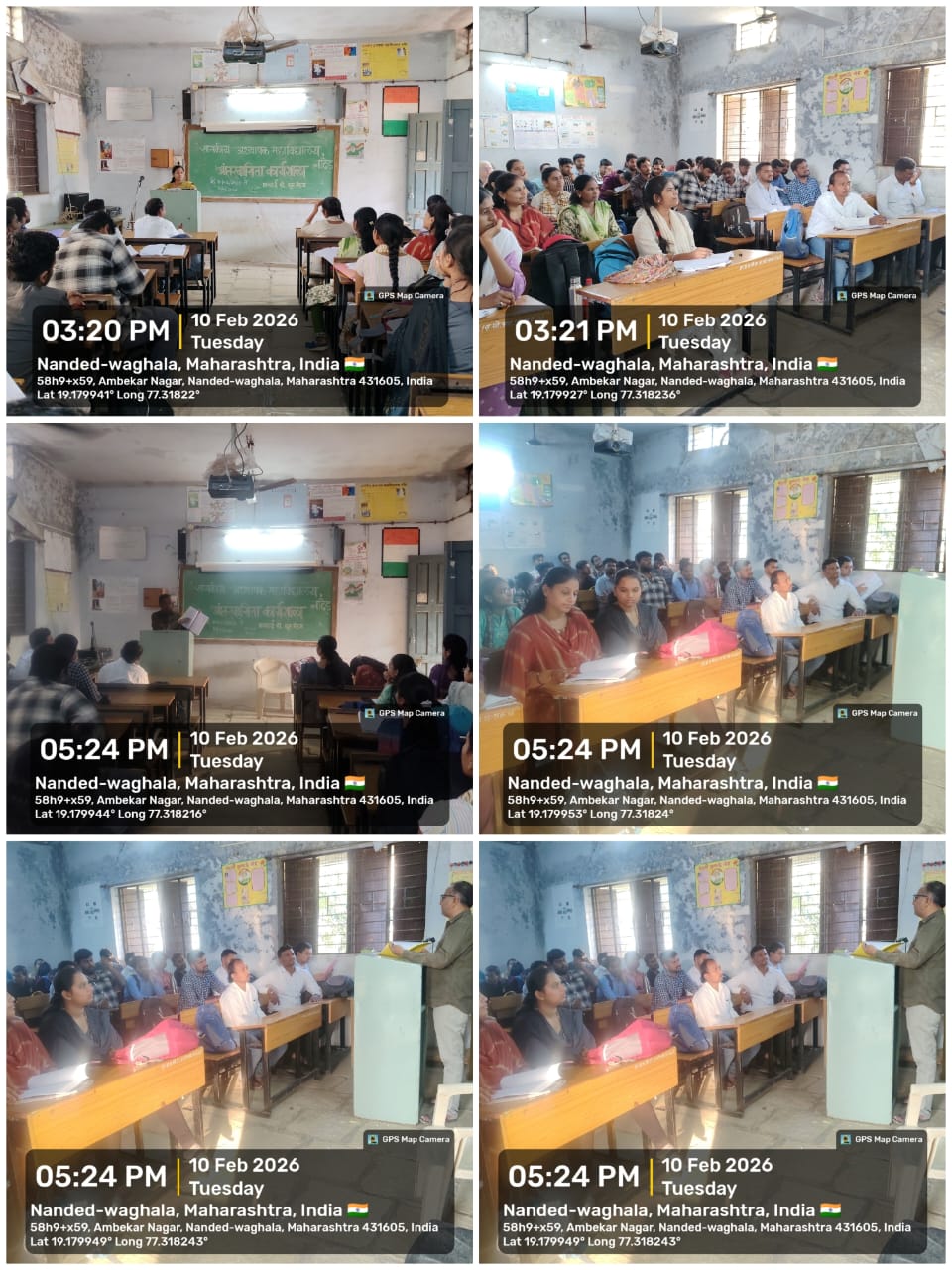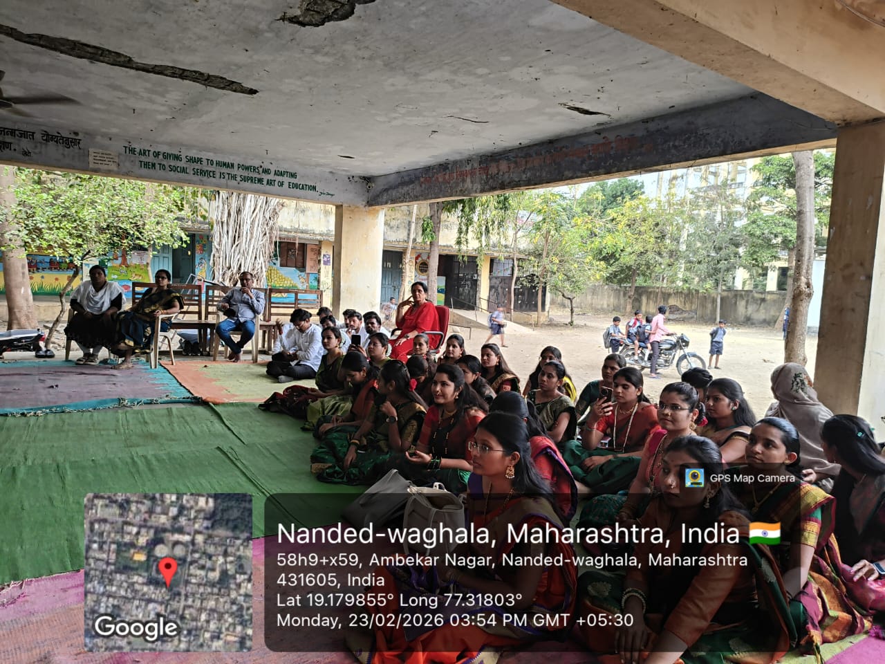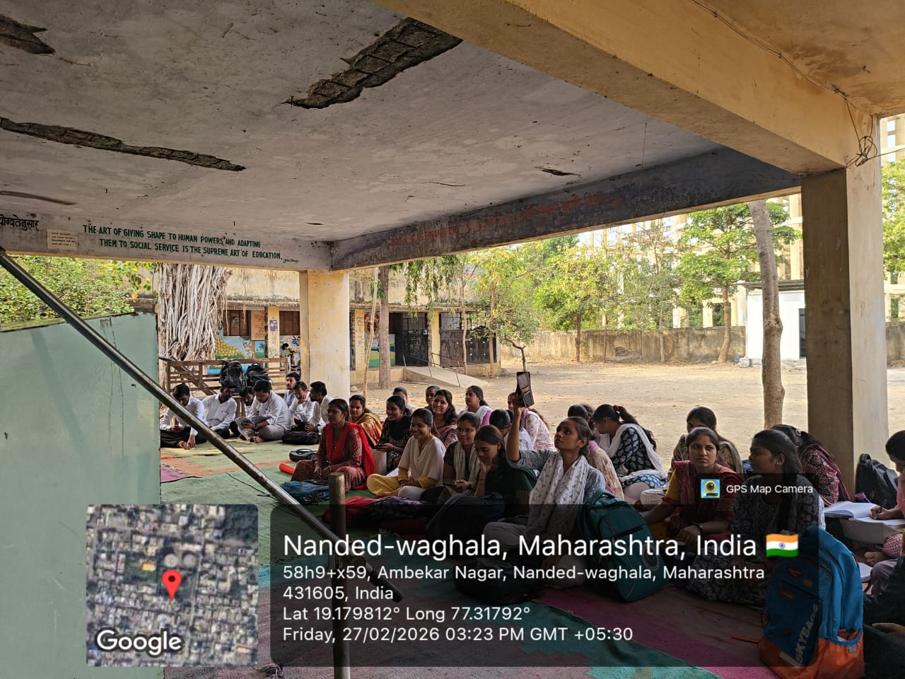 आज दिनांक 24 फेब्रुवारी 2026 रोजी महाविद्यालयात. एम पी एस सी. परीक्षा व तयारी या विषयावर एका दिवसाची कार्यशाळा घेण्यात आली.श्री कैलास विठ्ठल तिडके,जिल्हा बाळ विकास प्रकल्प अधिकारी,नांदेड यांनी द्वितीय वर्षाच्या प्रशिक्षणार्थ्यांना एम पी एस सी(MPSC) परीक्षा व तयारी या बाबत चे मार्गदर्शन केले .या वेळी महाविद्यालयाच्या प्राचार्य डॉ उर्मिला धूत यांनी प्रशिक्षणार्थ्यांनी स्पर्धा परीक्षांचा अभ्यास करावा या बाबत उदबोधन केले ( one day work shop for 2nd year teacher trainee has organised on MPSC exams & preparation . Dist Bal Vikas project offer Nanded Shree Kailash Vitthalrao Tudke has guided to teachertrainee .College principal Dr Urmila Dhoot oriented to teacher trainee about awareness of MPSC exam on dated 24 February 2026)