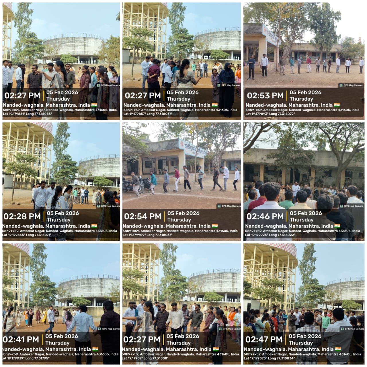 आज दिनांक 26 जानेवारी 2026 रोजी सकाळी 8.45 वाजता. बीएड प्रथम वर्ष साठी देश भक्ती गीत गायन व रंगोली स्पर्धा घेण्यात आली(patriotic song singing & Rangoli competition has organised for first year on 26 January 2026 on 8.45 a m)