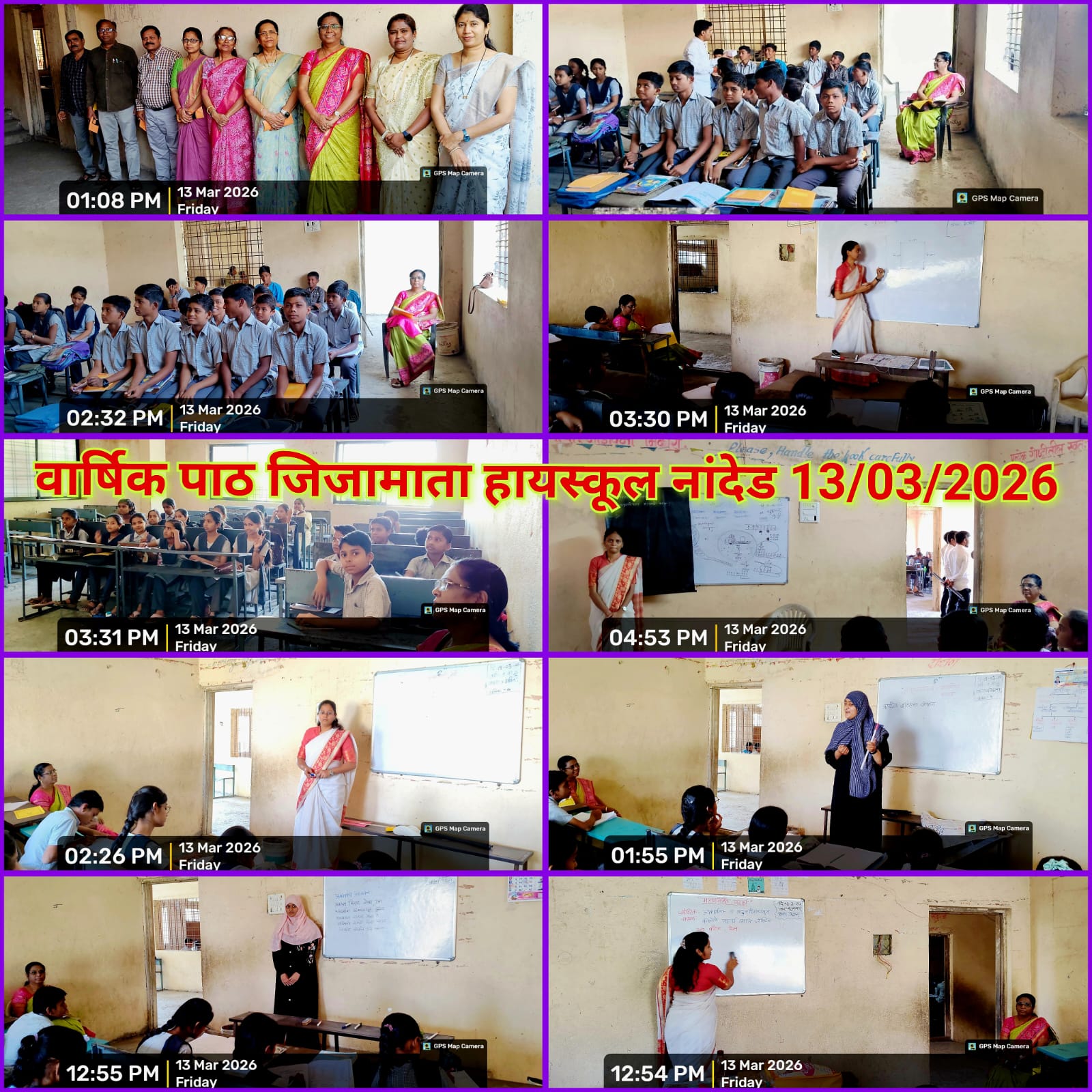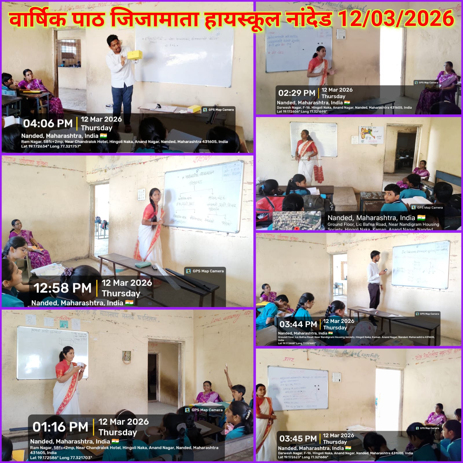 आज दिनांक 12 व 13 मार्च 2026 रोजी. द्वितीय वर्ष चतुर्थ सत्र प्रशिक्षणार्थ्यांची वार्षिक पाठ परीक्षा जिजामाता माध्यमिक शाळा गांधी नगर येथे घेण्यात आली (Final lesson Examination of B.Ed .second year teacher trainee has organised at Jijamata Highschool, Gandhi Nagar on dated 12 & 13 march 2026 )