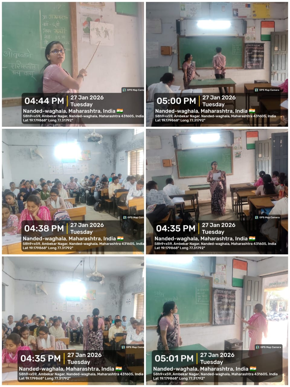 आज दिनांक 27 जानेवारी 2026 रोजी प्रथम वर्ष द्वितीय सत्रासाठी प्रा.डॉ भाटकर मंजुषा सी एच बी यांनी मराठी विषयाचे दिग्दर्शन पाठ सादर केले(demostration lesson of Marathi method has presented by prof Bhatkar Manjusha Chb for first year 2nd semester on dated 27 January 2026 )