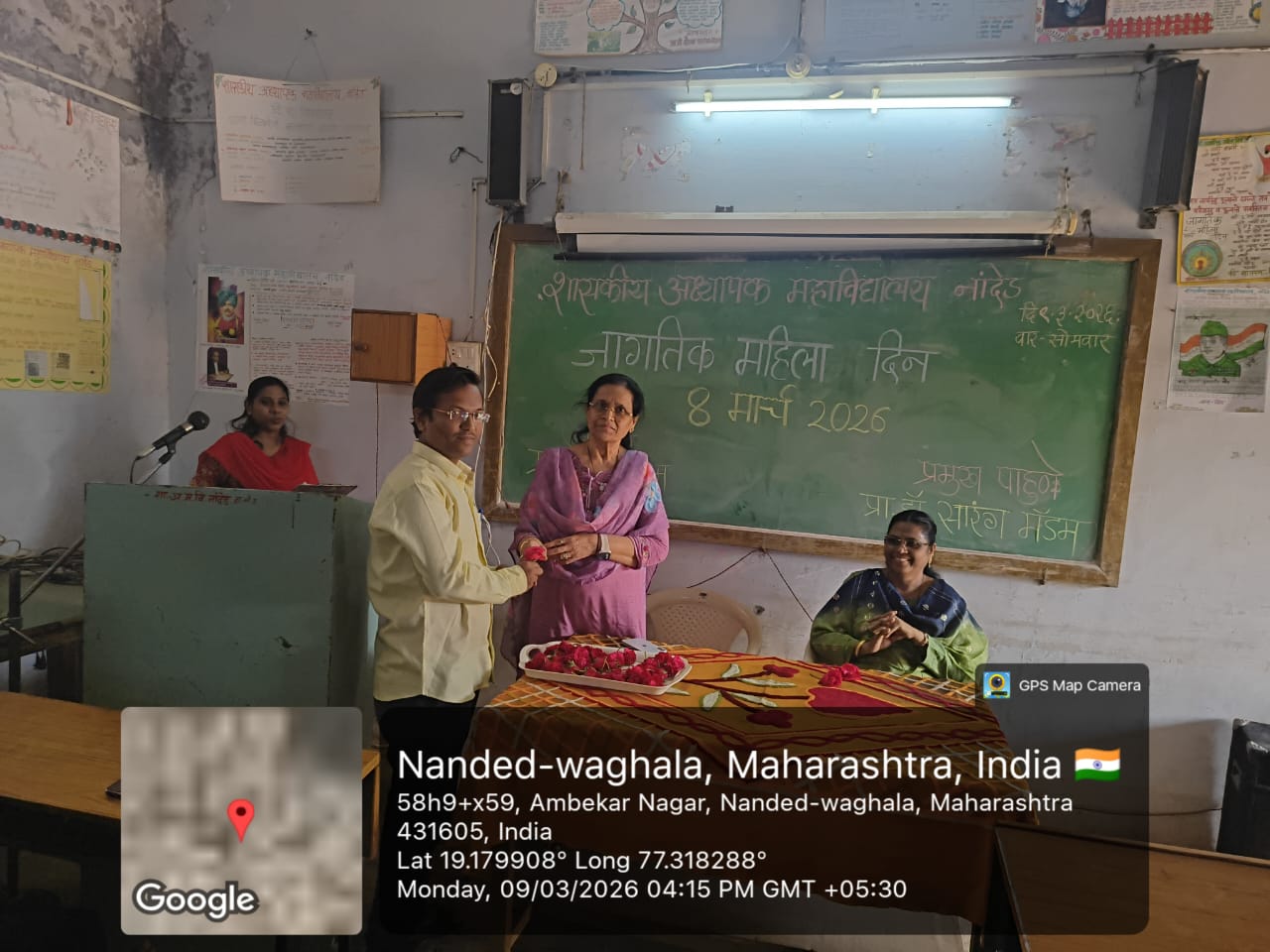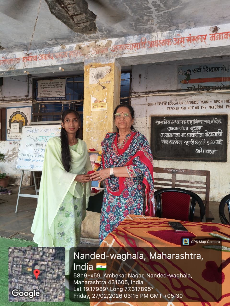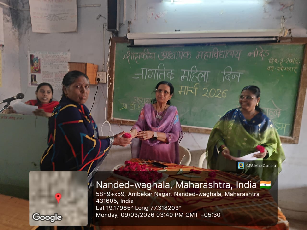 त्याठिकाणी शासकीय अध्यापक महाविद्यालय नांदेड च्या प्राचार्य डॉ.ऊर्मिला धूत मॅडम, व प्रा.डॉ.रामटेके मॅडम, प्रा.डॉ.सारंग मॅडम, प्रा.डॉ.भुसारे सर,