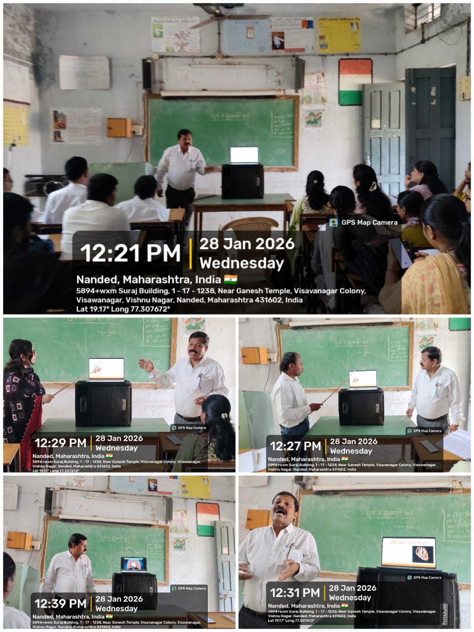 आज दिनांक 11 जानेवारी 2025 रोजी राजर्षी शाहू विद्यालय वसंत नगर, नांदेड येथे डॉ. सारंग यांनी सराव पाठ व निरीक्षण संदर्भात मार्गदर्शन करत असताना