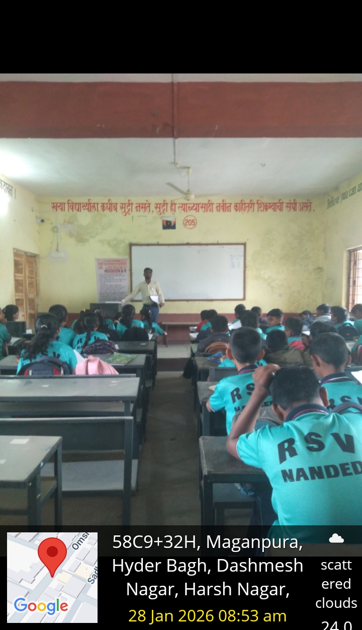 आज दिनांक 11 जानेवारी 2025 रोजी राजर्षी शाहू विद्यालय वसंत नगर ,नांदेड. येथे सकाळच्या सत्रात येऊन प्राध्यापक डॉक्टर शाकीर सर यांनी गट क्रमांक तीनच्या विद्यार्थ्यांना मार्गदर्शन केले.