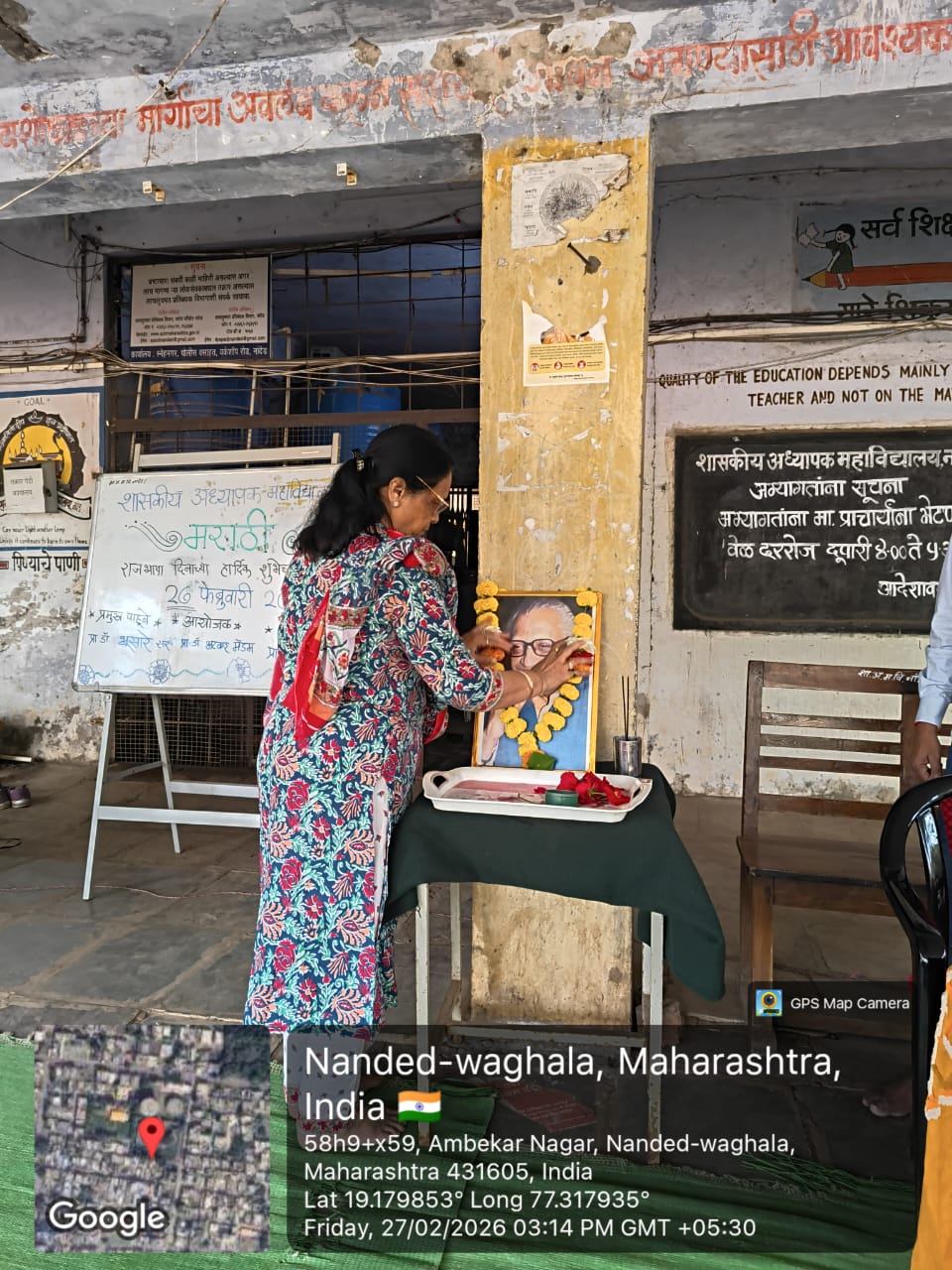 आज दिनांक 27 फेब्रुवारी 2026 रोजी थोरकवी,साहित्यिक ,कथाकार ,ज्ञानपीठ पुरस्कार विजेते वि वा शिरवाडकर यांची जयंती मराठी भाषा गौरव दिन म्हणून साजरी करण्यात आली.या प्रसंगी प्रशिक्षणार्थ्यांनी मराठी भाषेचे महत्व ,चारोळ्या ,गीत ,कविता ,पोवाडा ,भित्तीपत्रके ,नाटिका इत्यादींच्या माध्यमातून व्यक्त केले,महाविध्यालायाचे प्रा. डॉ गोविंद भुसारे यांनी मराठी भाषा गौरव दिनाचे महत्व सांगितले तर महाविद्यालयाचे प्राचार्य डॉ उर्मिला धूत यांनी कार्यक्रमाचा आढावा घेऊन कवी विवा शिरवाडकर यांचे मराठी भाषेतील योगदान यावर मार्गदर्शन केले (Marathi Bhasha Gaurav din has celebrated with various activities by teacher trainee on dated 27 February 2026)