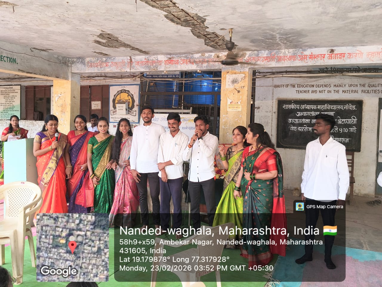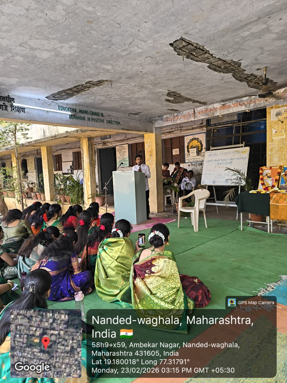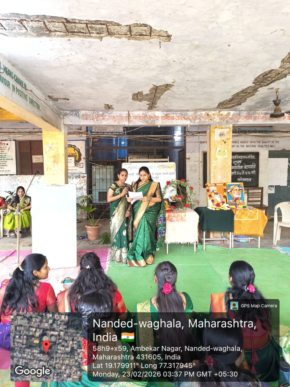 आज दिनांक 23 फेब्रुवारी 2026 रोजी संत गाडेबाबा व छत्रपती शिवाजी महाराज यांची जयंती प्रतिमापूजन करून करण्यात आली.या प्रसंगी प्रशिक्षणार्थ्यांनी शिवाजी महाराज यांच्या जीवन कार्यवर अनेक विविध बाबी सादर केल्या यात भाषण कवितापोवाडा ,शेरशायरी ,नाटिका,भित्तीपत्रके,गीत,प्रश्न मंजुषा इत्यादी कृतीतून प्रशिक्षणार्थ्यांनी शिवाजी महाराजांचे विविध कार्य सादर केले.कार्यक्रमाच्या शेवटी महाविद्यालयाच्या प्राचार्य डॉ उर्मिला धूत यांनी संत गाडगे बाबा व छत्रपती शिवाजी महाराज यांचे जीवन कार्य आजच्या परिस्थिती कसे मार्गदर्शक आहे यावर मार्गदर्शन केले ( birth anniversary of Sant Gadge Baba &Chatrapati Shivaji Maharaja has celebrated by Idol worship,on this occasion teacher trainee performed various activities on Chatrapati Shivaji Maharaj life work such as-speech ,ballad,couplets,act ,wallpapers,Geet ,quiz ,etc.chair person pri.Dr Urmila Dhoot has guided to the teacher trainee on life work of sant Gadge Baba &Chatrapati Shivaji Maharaj on dated 23 February 2026)